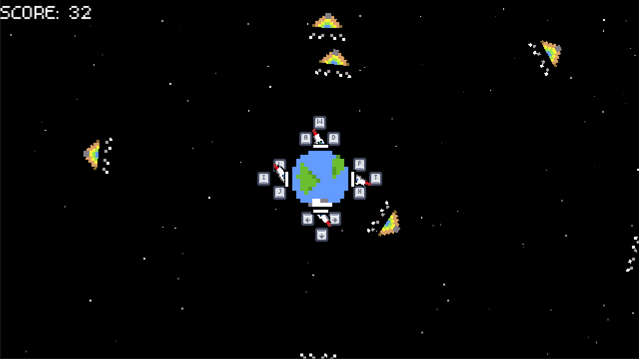 A relentless swarm of PyramAliens is descending upon Earth. Your mission is simple: Do not let them touch the ground.